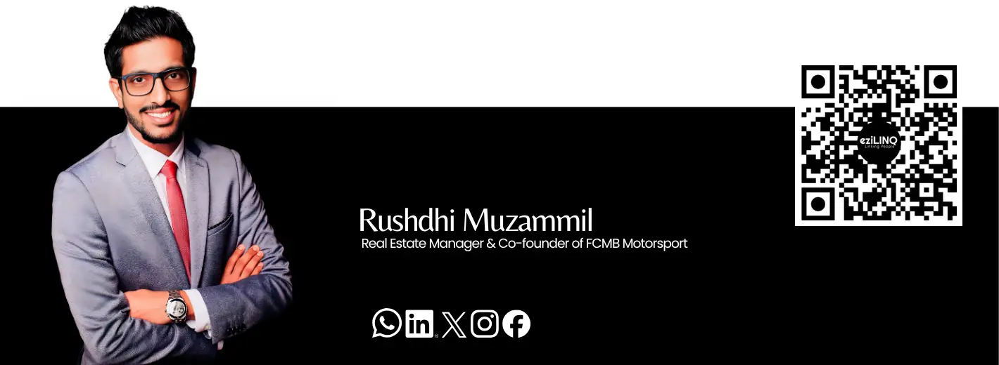 As co-founder of FCMB Motorsport, Rushdhi and his team has competed in grueling endurance events—700KM challenges, 12-hours races at various tracks in UAE, even representing Sri Lanka internationally. The parallels to real estate aren't abstract; they're practical.